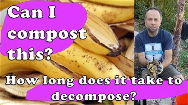 A full-sized banana, like the peel, can take up to 3 or 4 weeks to fully decompose. Whether you compost with the help of worms via vermicomposting or through traditional compost, which gets hot as materials break down outdoors, bananas will break down in the process, adding nitrogen to the compost.What should you not put in compost?