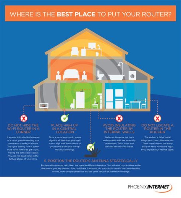 The best place to set up your router is in a central, unobstructed location to ensure your home Wi-Fi network has a strong signal anywhere in your house. Moving your router even just a few feet might save you from endless connection problems and allow you to get the most out of your internet connection.Can I put my router anywhere?