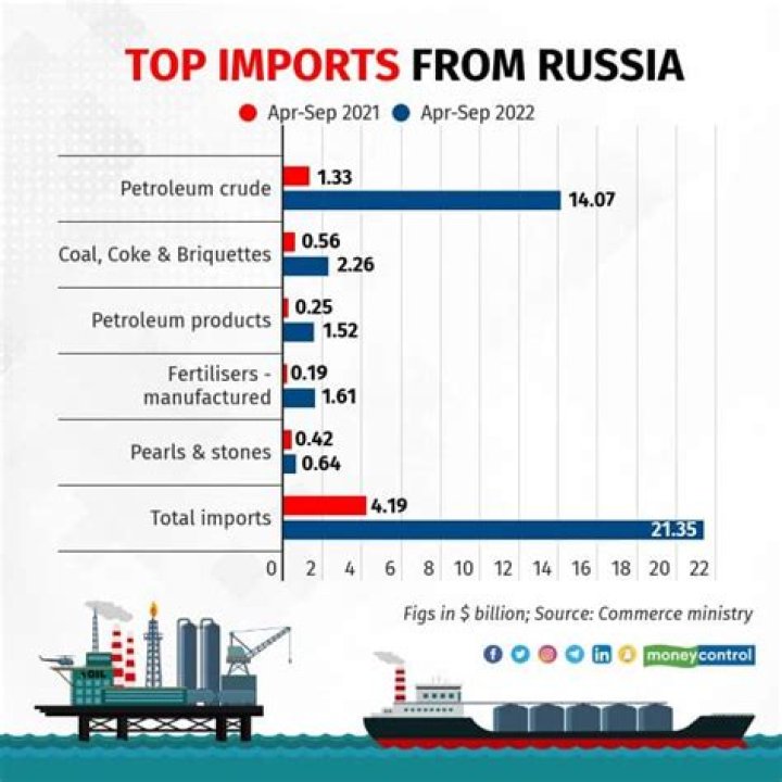 Russia has sold oil to India and China, which have large, rapidly growing economies and have disregarded international sanctions linked to the war. India's purchases of Russian oil, which once accounted for less than 3 percent of India's consumption, have soared.How much does Canada import from Russia?