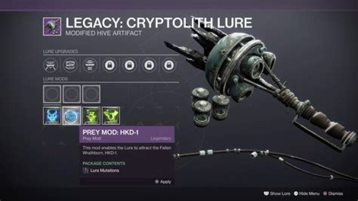How to upgrade the Cryptolith Lure. You'll need to speak to Crow, the Spider's new enforce who you can find next to Spider on the Tangled Shore. Speak to them, and you'll be able to unlock several upgrades, and modifications.Wrathborn Hunt Guide & EASY Cryptolith Lure Charge [Destiny 2 Beyond Light]