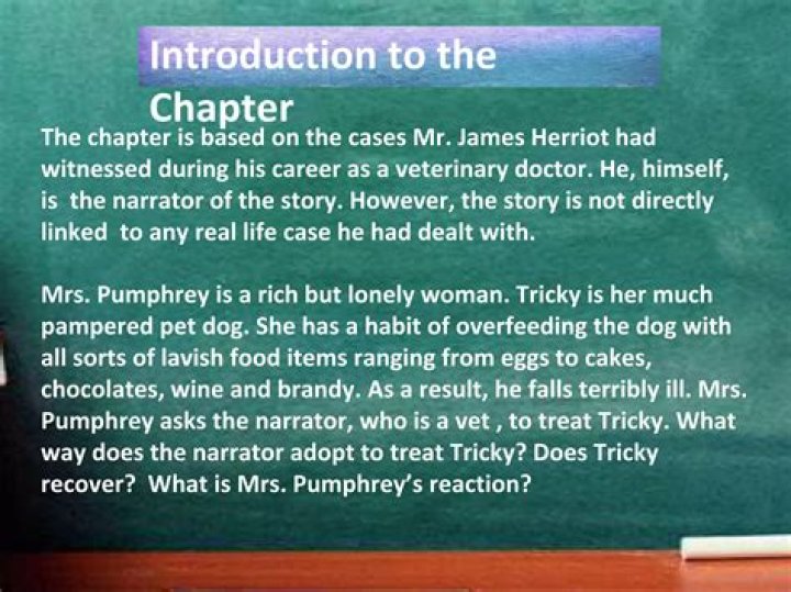 How does he treat the dog? Answer: James Herriot treats Tricki just like he would treat an overweight and lazy dog, which Tricki is. He cuts down his food intake and keeps him under strict observation for the initial days at hospital.How did the narrator try his best to impress that he was normal sighted during his encounter with the girl?