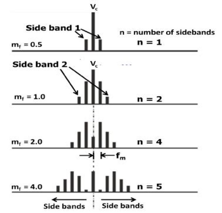 Like AM, FM also produces sidebands. But unlike AM, which produces a single pair of sidebands for each frequency in the modulating signal, the FM process produces an infinite number of pairs of sidebands for each frequency in the information signal. As a result, the bandwidth occupied by an FM signal is enormous.What are sidebands in vibration analysis?