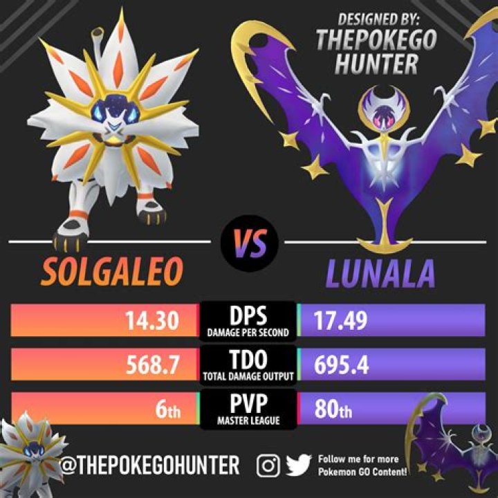 Pokemon Sword and Shield Lunala is a Psychic and Ghost Type Moone Pokémon, which makes it weak against Ghost, Dark type moves. You can find and catch Lunala using our guide below on How To Obtain this pokemon. The Max IV Stats of Lunala are 137 HP, 113 Attack, 137 SP Attack, 89 Defense, 107 SP Defense, and 97 Speed.Is Solgaleo in Pokemon sword?