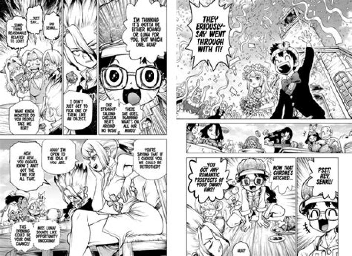 Kohaku once kissed Senku, in order to cover from Kirisame but he was in shock rather than joy. In spite of this she hugged him after he revived her and Ginro. She also comforted him when he was thinking about his late father being on the treasure island and what he endured.Who did Byakuya Ishigami marry?