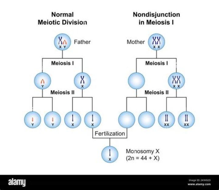 He referred to these XX Y segregation events as "secondary nondisjunction." Cooper (1948) proposed that secondary nondisjunction results from the formation of an X-Y-X trivalent, such that the Y chromosome directs the segregation of two achiasmate X chromosomes to opposite poles on the first meiotic spindle.Is Down Syndrome nondisjunction?