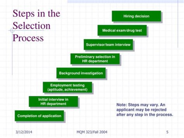 Selection is the process of choosing the most suitable candidates from those who apply for the job. It is a process of offering jobs to desired candidates. Once the potential applicants are identified, the next step is to evaluate their qualification, qualities, experience, capabilities, etc. & make the selection.What are the 5 stages of the recruitment process?