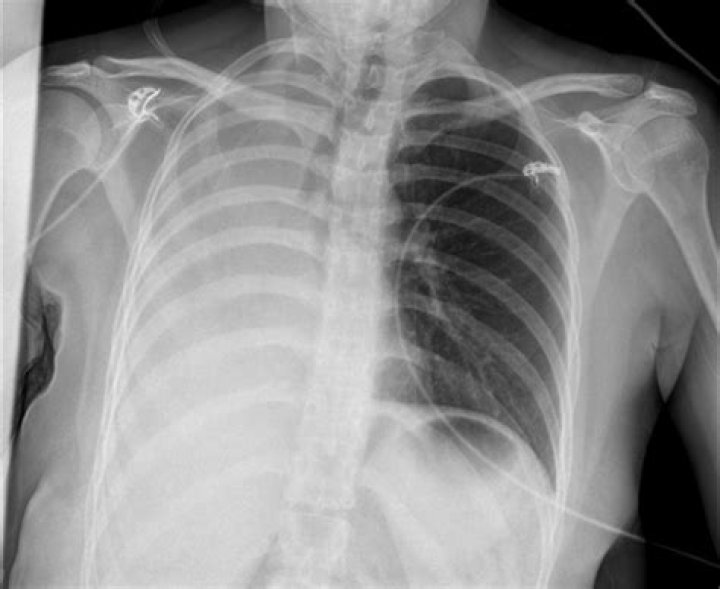 Symptoms usually include sudden chest pain and shortness of breath. On some occasions, a collapsed lung can be a life-threatening event. Treatment for a pneumothorax usually involves inserting a needle or chest tube between the ribs to remove the excess air. However, a small pneumothorax may heal on its own.How do they fix a collapsed lung?