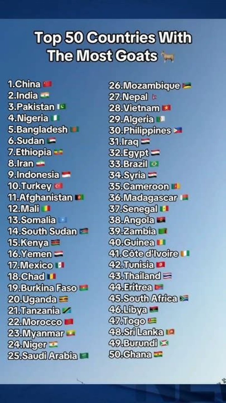 - Nigeria. Nigeria is the 4th biggest goat meat-producing country in the world. ...