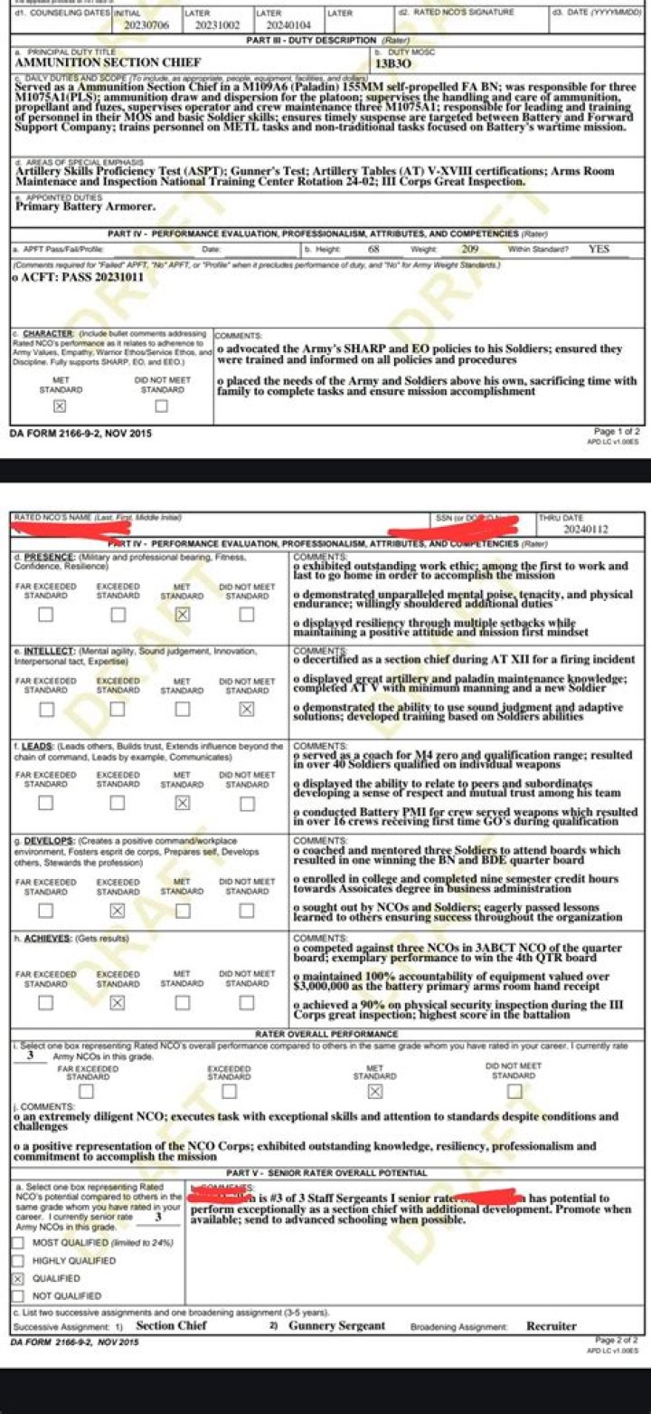 Policy Change: Incorporates the senior rater four-box-check system and senior rater profile label for DA Form 2166-9-2 (SSG – 1SG/MSG) and DA Form 2166-9-3 (CSM/SGM). secondary zone; ahead of peers (Note: Senior raters are limited to 24% of the ratings in a grade to retain the “MOST QUALIFIED” label.)Can a civilian rate an NCO?