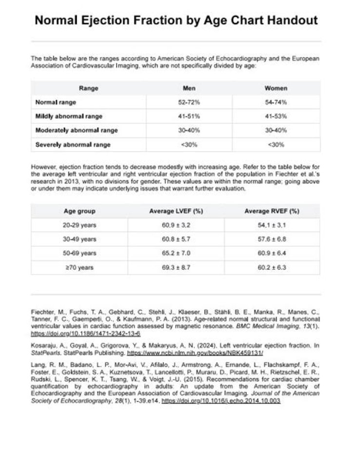 What is a normal ejection fraction for a 60 year old?