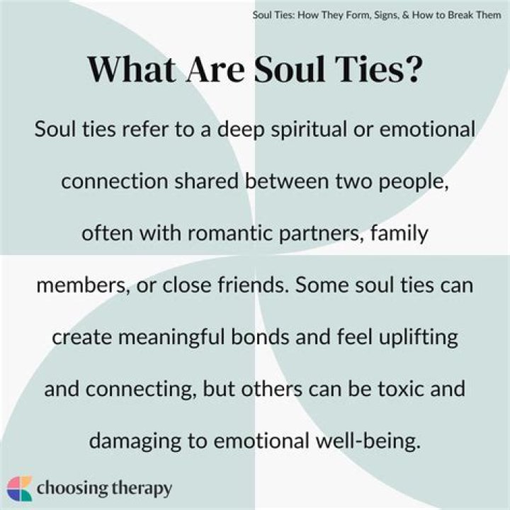 A soul tie relationship can be a very positive connection, but it can also become toxic if the person you're connected to isn't a positive influence. "When a soul tie feels constraining, dark, or obsessive, mental and physical health can be negatively affected," says Dr.What is the difference between soul tie and soulmate?