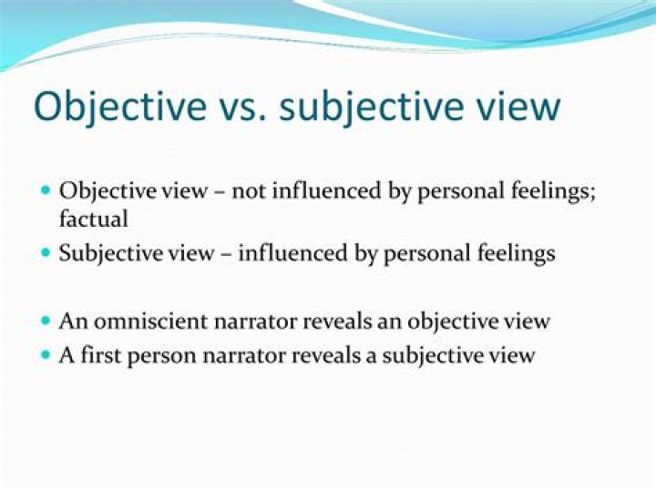 In an objective point of view, the narrator is not involved in the action of the story. Like a fly on the wall, they might report characters' actions, words, and expressions, yet the narrator cannot tell the reader exactly what any one character is thinking or feeling. This point of view relies heavily on inference.What does being subjective mean?