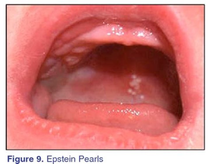 Epstein pearls are very common, occurring in up to 60–85% of all newborns. Experts believe that they happen while the roof of the baby's mouth is forming in the womb. Epstein pearls do not occur as a result of anything that the woman did during pregnancy. They are also not a sign that anything is wrong with the baby.What are Epstein pearls in babies?