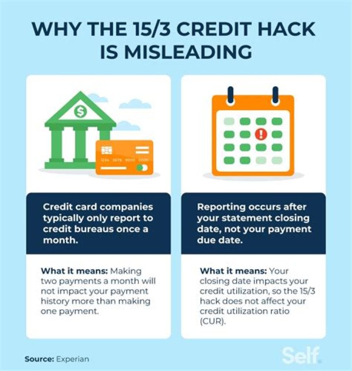 The 15/3 hack claims you can help your credit score dramatically by making half your credit card payment 15 days before your account statement due date and the other half-payment three days before. Problem is, it doesn't work.How can I raise my credit score 200 points in 30 days?