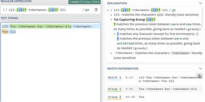 matches any character ( . ) any number of times ( * ), as few times as possible to make the regex match ( ? ). You'll get a match on any string, but you'll only capture a blank string because of the question mark.What is the difference between * and *?