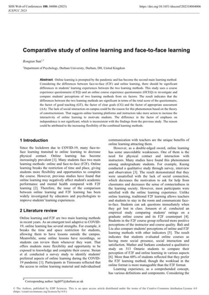 Face-to-face learning methods usually only involve traditional learning materials such as textbooks and lecture notes. An online learning session is more interactive in comparison, with many different types of training.Why face to face learning is better than online classes?