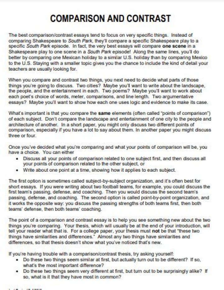 A compare and/or contrast paragraph is required if you are asked to examine similarities and/or differences. Compare focuses on similarities. Contrast focuses on differences.What is a comparison essay?