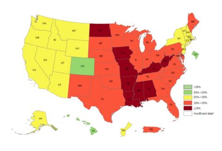 Updated September 2021: According to the most recent Behavioral Risk Factor Surveillance System (BRFSS) data, adult obesity rates now exceed 35% in 16 states. Mississippi has the highest adult obesity rate at 39.7% and Colorado has the lowest at 24.2%.What's the fattest city in America?