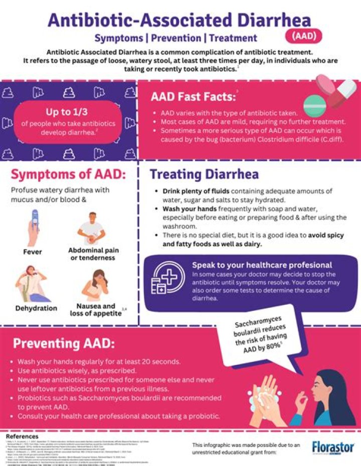 Antibiotic-associated diarrhea is likely to begin about a week after you start taking an antibiotic. Sometimes, however, diarrhea and other symptoms don't appear until days or even weeks after you've finished antibiotic treatment.What is azithromycin used to treat?