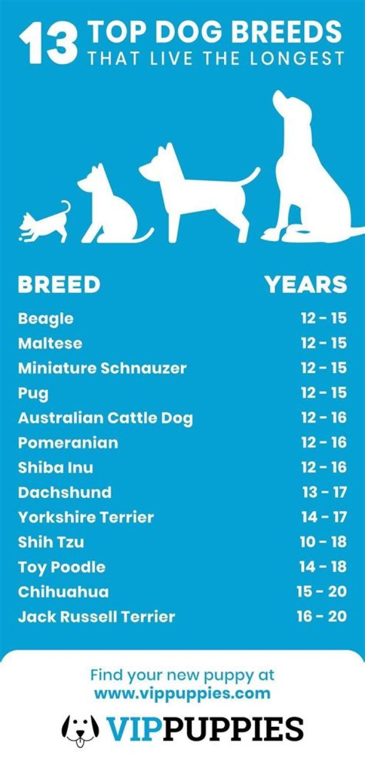 An Australian Cattle Dog called Bluey holds the record for the longest-lived dog - reaching an incredible 29 years of age. The breed normally lives for around 15 years.Which breed of dog has the longest lifespan?